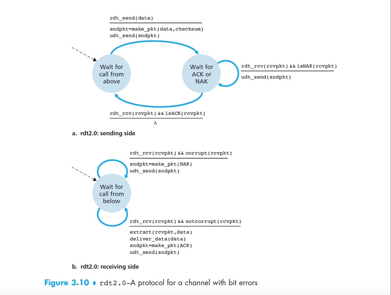 rdt2.0: 비트 오류가 있는 채널 상에서의 신뢰적 데이터 전송