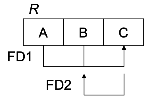 ◆ $F$: universal relation schema $R$이 있고 여기에 정의되는 Functional Dependency이다.