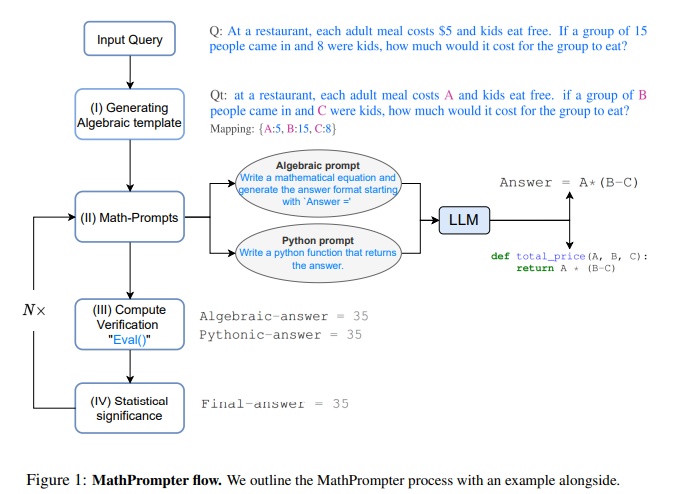 Arithmetic 문제에 대한 LLM의 성능을 향상시키고 생성 결과물에 대한 신뢰도를 높이는 방법론인 MathPrompter 제안
