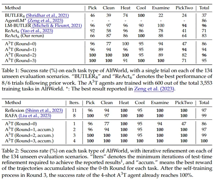 - ActRe + ReAct + policy gradient 학습 루프로 구성했으며 실제 환경에서 성능이 GPT-4 기반 방법보다 더 좋았음.
