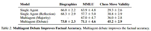 - 토론을 여러 round 반복하는 것 + 여러 model agent를 사용하는 것이 모두 성능 향상에 도움을 줌.