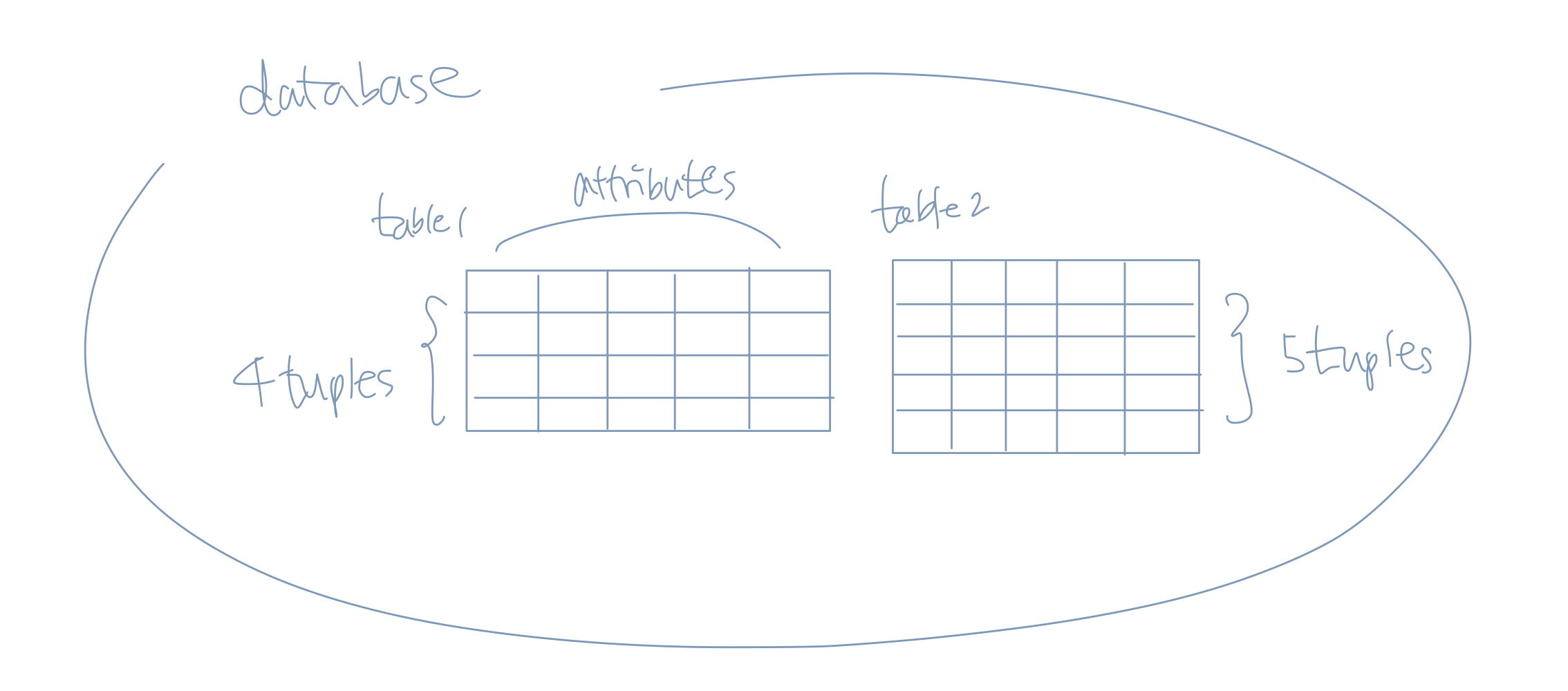 데이터베이스는 relation들의 집합이고, 하나의 relation은 tuple들의 집합이다.