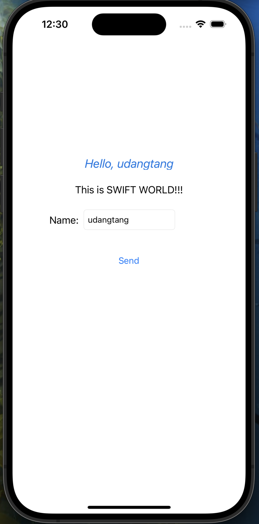 Send 버튼을 눌렀을 때 입력한 이름을 읽어서 레이블에 출력하는 함수를 만들고 이 함수를 버튼과 연결시켜줘야한다. 이러한 함수를 액션 함수(Action Function)이라 한다.